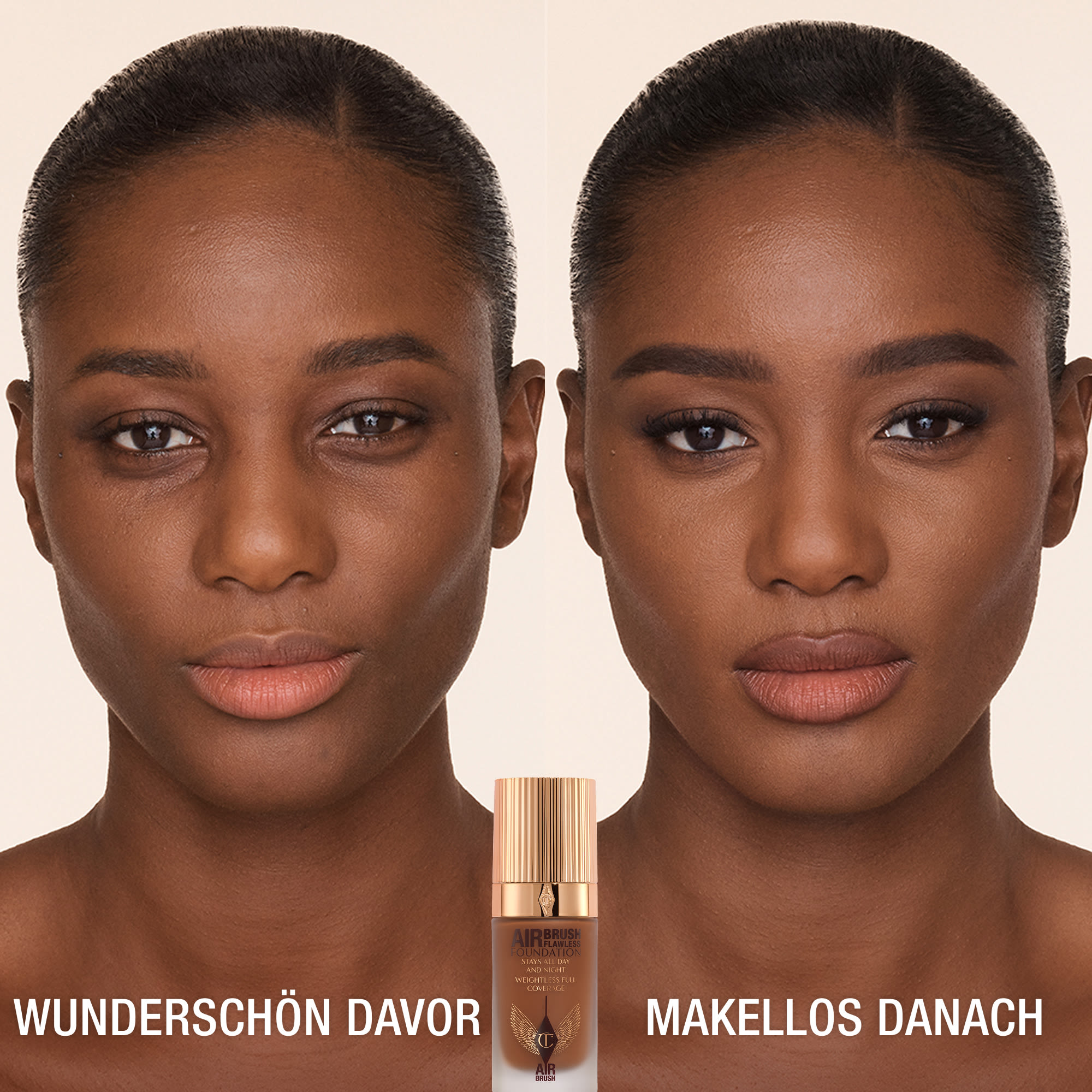 Ich habe immer gesagt, dass Makellosigkeit ein Gefühl ist, Darling, und diese Foundation mit voller Deckkraft ist mein Geheimnis für eine makellose Haut, heute und morgen! Es gibt einen Grund, warum 9 von 10 Personen angegeben haben, dass sie zu der AIRbrush Flawless Foundation wechseln würden!* Shoppe 44 AIRtrue-Farbtöne auf CharlotteTilbury.com und in der Charlotte Tilbury App, um deine Makellosigkeit zu finden.