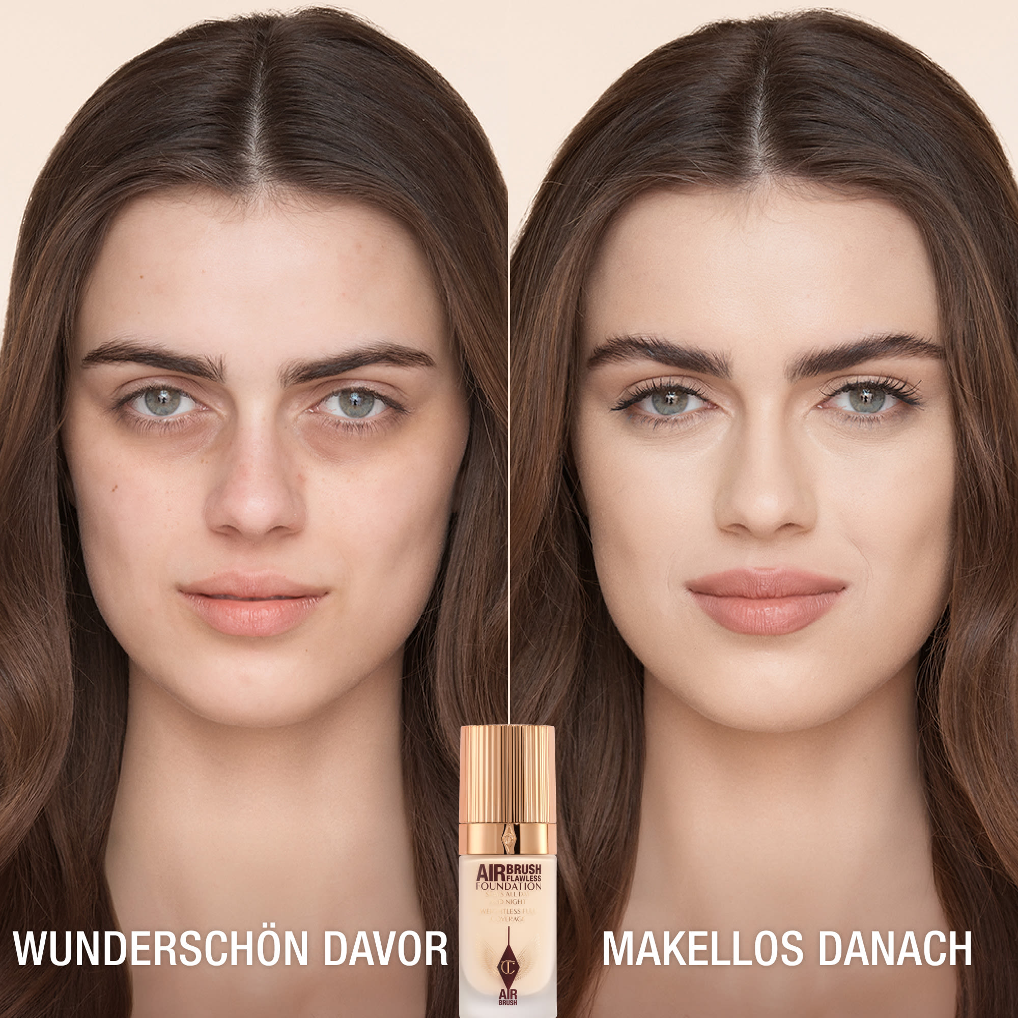 VORBEREITUNG: Bevor du die Airbrush Flawless Foundation aufträgst, solltest du deine Haut mit Charlotte's Magic Cream mit Feuchtigkeit versorgen und primen! Die WUNDER-FEUCHTIGKEITSCREME spendet sofort Feuchtigkeit, glättet und polstert die Haut auf – die perfekte Basis für dein Make-up.