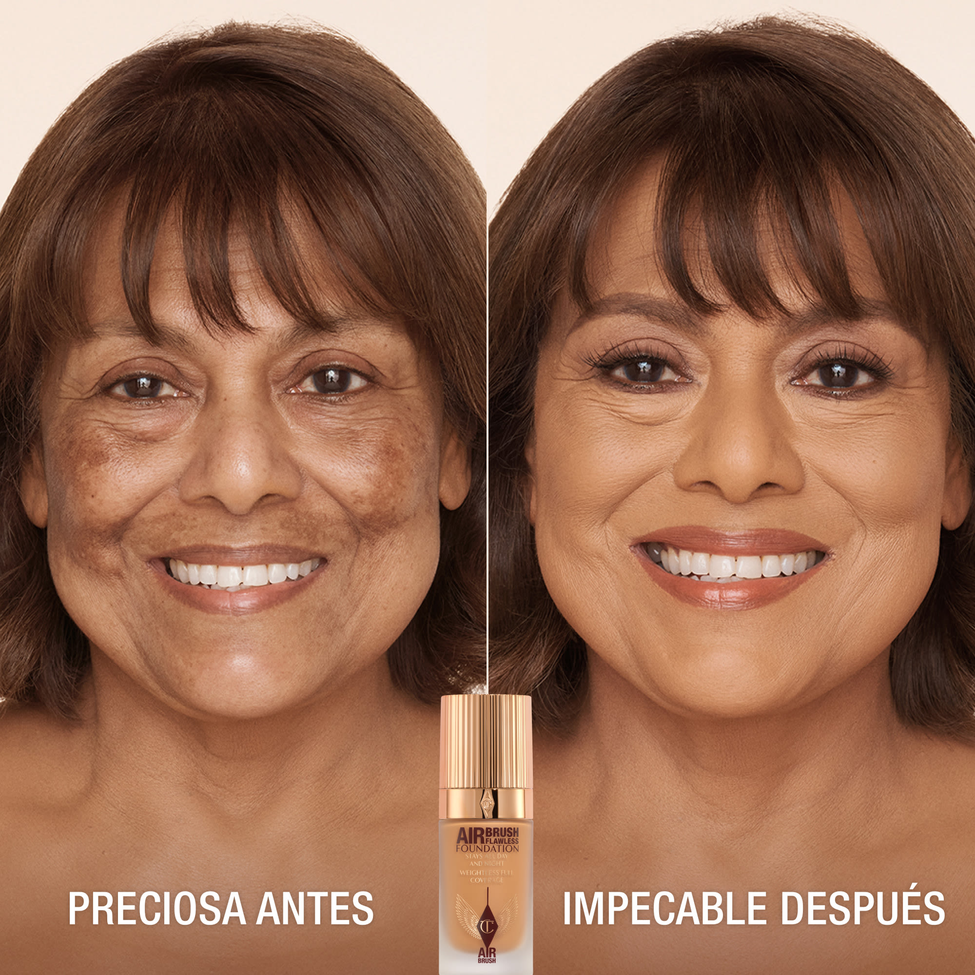 Darling, ¡este es el futuro de las bases de alta cobertura! Después de 10 años de confianza en AIRbrush, he llevado la base AIRbrush Flawless Foundation al siguiente nivel, presentando la NUEVA tecnología revolucionaria que transforma el maquillaje en cuidado de la piel.