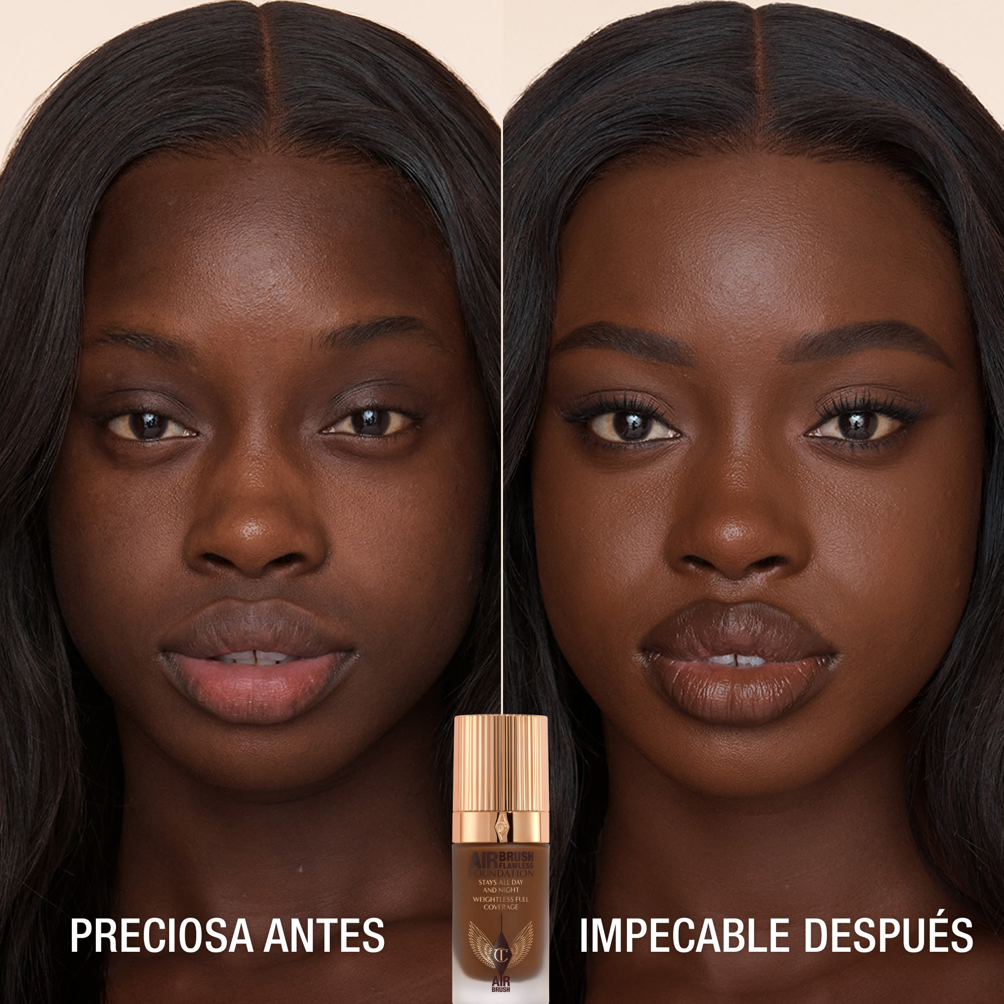 Si te encanta un acabado mate en 3D que nunca se vea plano… Si te gusta una cobertura fabulosa y total que no se asienta en las líneas de expresión... Si te gusta la base de maquillaje duradera que se mantiene todo el día sin preocupaciones… ¡AIRbrush Flawless Foundation es la que estabas esperando! Darling, he embotellado las legendarias propiedades alisadoras y difuminadoras de mi galardonado polvo AIRbrush para desatar una confianza AIRbrush Flawless imparable, tanto en la alfombra roja como en la vida real.
