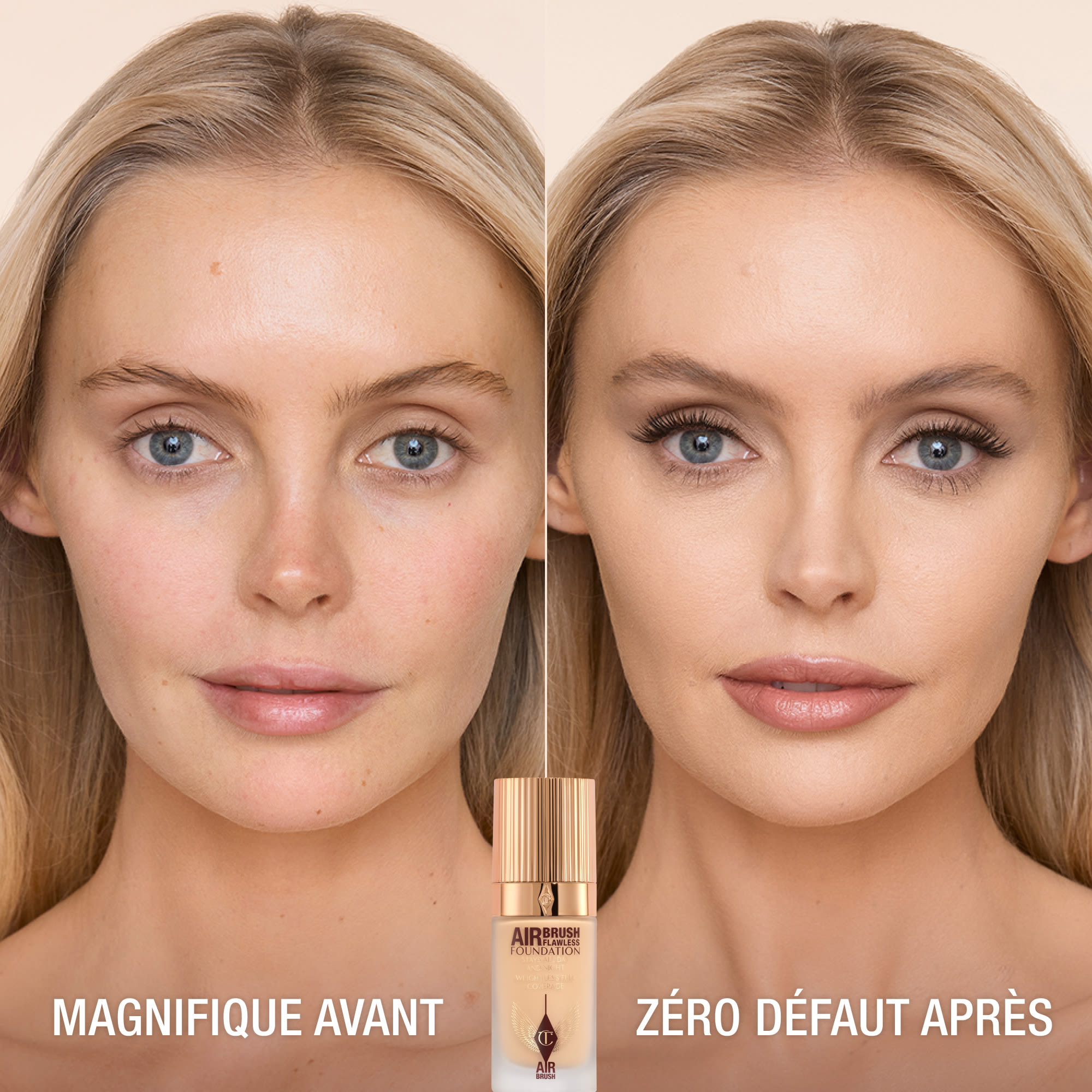 Darlings, j'ai toujours affirmé que la perfection est dans le ressenti et ce fond de teint à couvrance totale est mon secret pour une peau parfaite aujourd'hui comme demain ! 9 personnes sur 10 ont déclaré qu'elles échangeraient leur fond de teint pour le AIRbrush Flawless Foundation !* Découvrez 44 teintes AIRtrue sur CharlotteTilbury.com et sur l'Appli Charlotte Tilbury, pour trouver votre teinte zéro défaut.