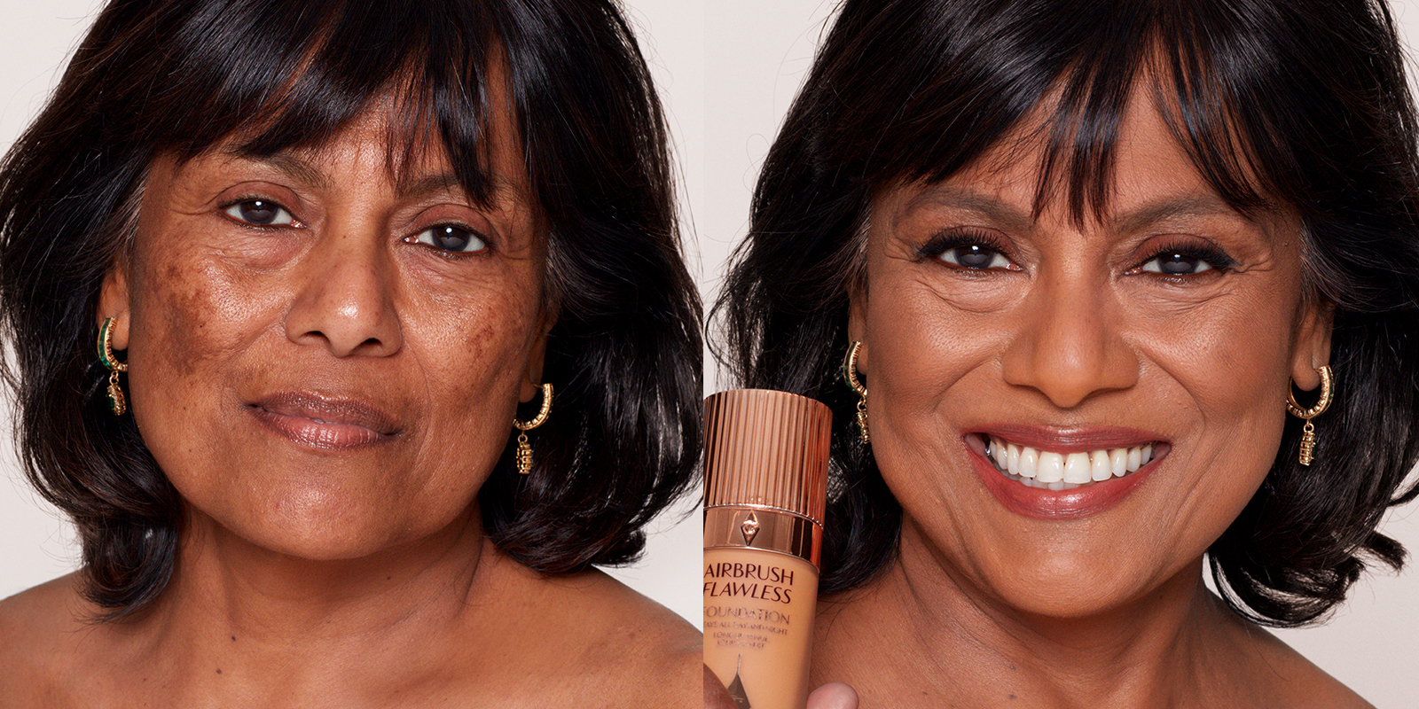The best foundation for hyperpigmentation and dark spots is a full-coverage foundation that creates a flawless-looking makeup base to correct the look of uneven skin tone. Full-coverage foundations conceal and blur the appearance of dark spots and hyperpigmentation, helping overall skin tone to look more even. I created my AIRbrush Flawless Foundation to give skin full, flawless-looking coverage that effortlessly covers the look of dark spots, hyperpigmentation and skin redness. If you want your complexion to look flawless without a dark spot in sight, you need to try my AIRbrush Flawless Foundation!