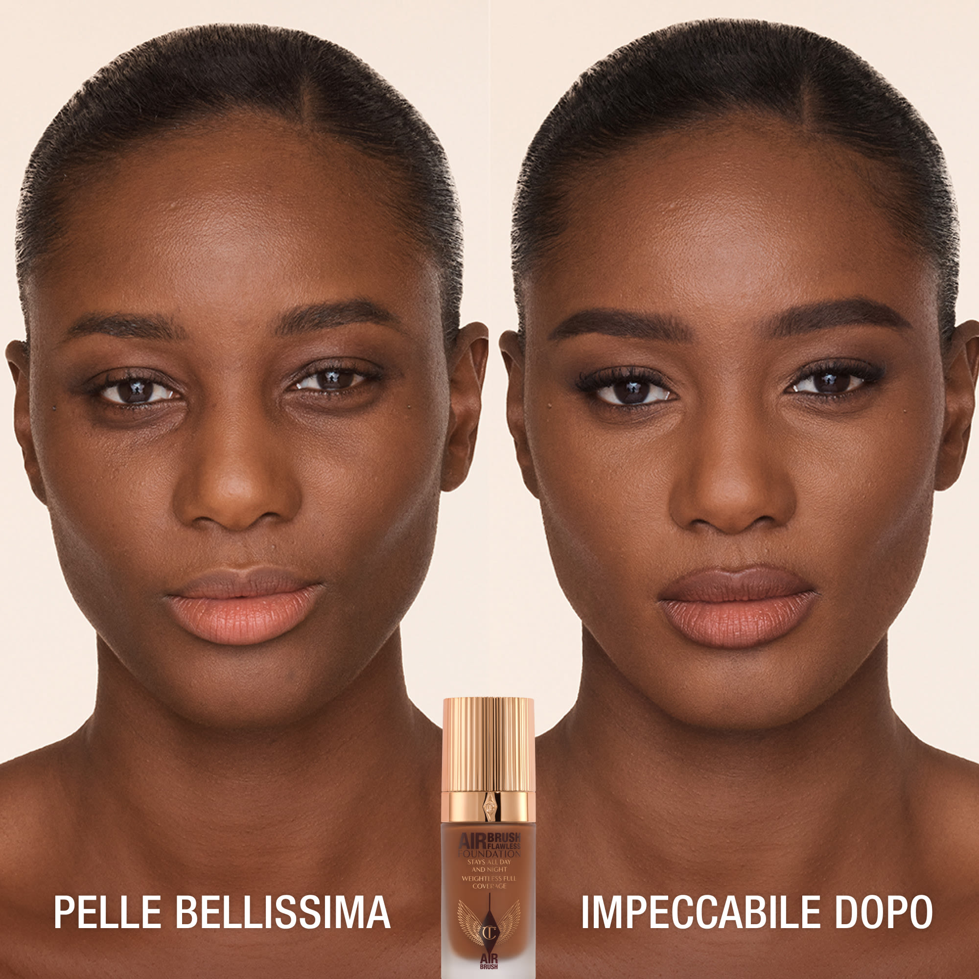 Darling, ho sempre detto che sentirsi impeccabili è fantastico e questo fondotinta a coprenza totale è il mio segreto per una pelle impeccabile oggi e domani! C'è una ragione per cui 9 persone su 10 hanno dichiarato che sarebbero passate ad AIRbrush Flawless Foundation!* Acquista 44 tonalità AIRtrue su CharlotteTilbury.com e sull'app Charlotte Tilbury per trovare la tonalità perfetta per te.