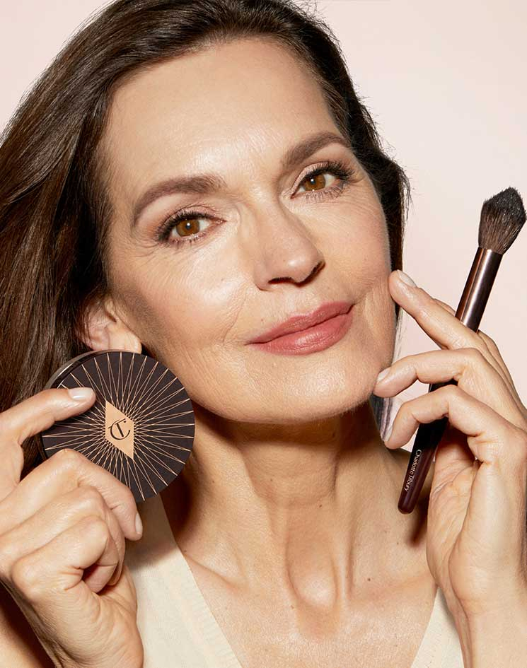 2.Use your Powder & Sculpt Brush to apply Charlotte’s Genius Magic Powder on top of foundation, tapping off any excess product before sweeping across your t-zone.