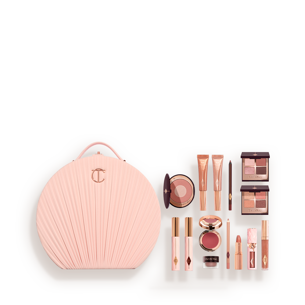 Dreamy collectors’ edition makeup box featuring 14 full-sized Pillow Talk icons for the eyes, lips + cheeks. Worth based on usual price of products sold separately.
