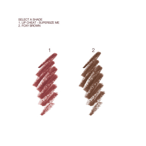 Lip Cheat lip liner (Fill: 1.2g): y backstage beauty secret in a creamy, waterproof, long-lasting formula for wider, fuller looking lips! Choose from Supersize Me, a deep nude pink shade, or Foxy Brown, a suede brown lip liner that looks ultra-flattering on deep skin tones.